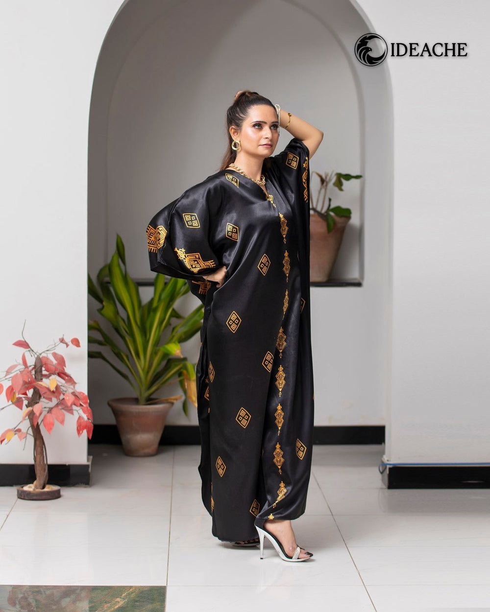 This solid shamoze kaftan and is sure to get you noticed! Our long & short silky shamoze caftans are beautiful and unbelievably comfortable. Made with high-quality fabrics, IDEACHE kaftans are machine-washable and always hold their shape.