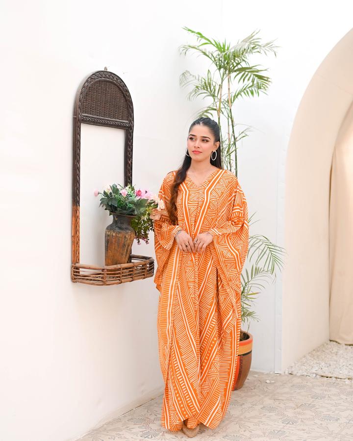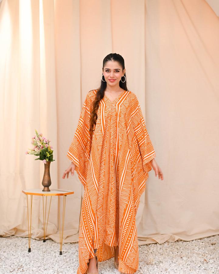 This comfy cotton lawn kaftan and is sure to get you noticed! Our long kaftans are beautiful and unbelievably comfortable. made with high-quality fabrics, IDEACHE kaftans are machine-washable and always hold their shape.